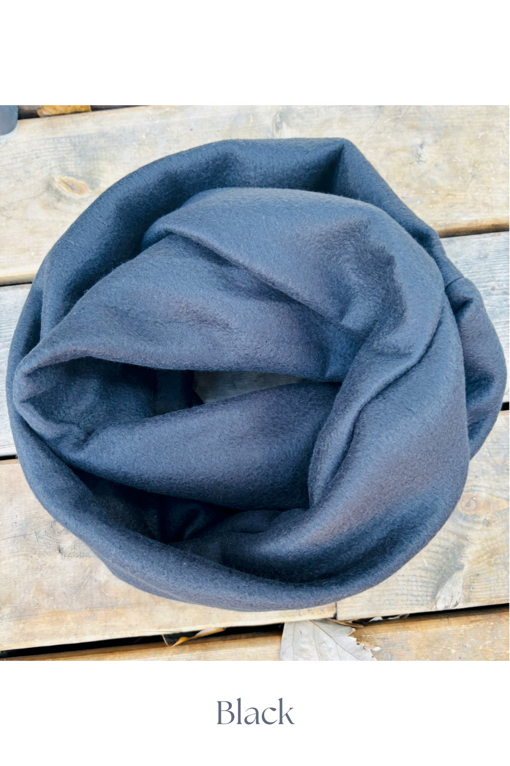 Soft, warm, and lightweight. This infinity scarf wraps comfortably around the neck for a cozy feel without bulk. Pair it with the reversible mittens for a matching winter set or wear it on its own for a touch of seasonal texture.