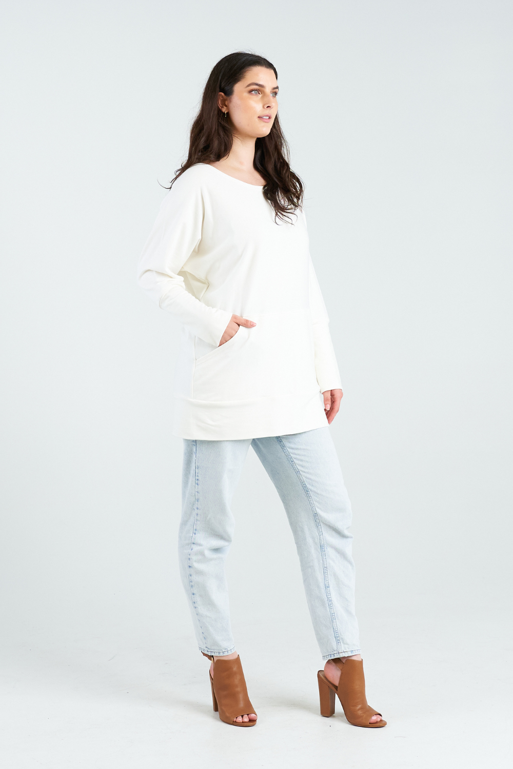 Relaxed-fit sweatshirt with cuffed dolman sleeves, a rounded neckline and a large front pocket.