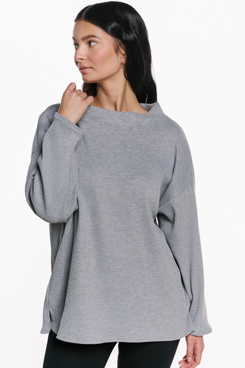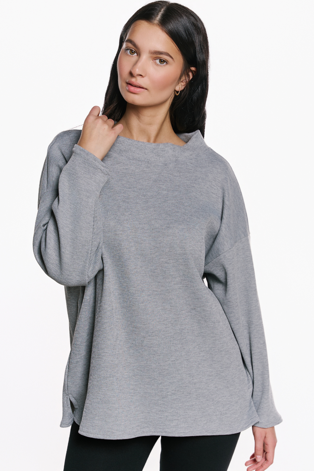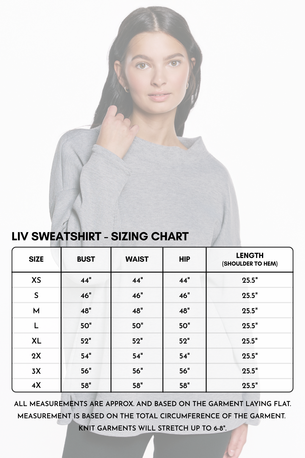 The Liv Sweatshirt is oversized and easy, perfect for lounging or layering. Made in bamboo terry and waffle knit, it features a soft draped crew neckline, side slits, and a relaxed fit for all-day comfort.