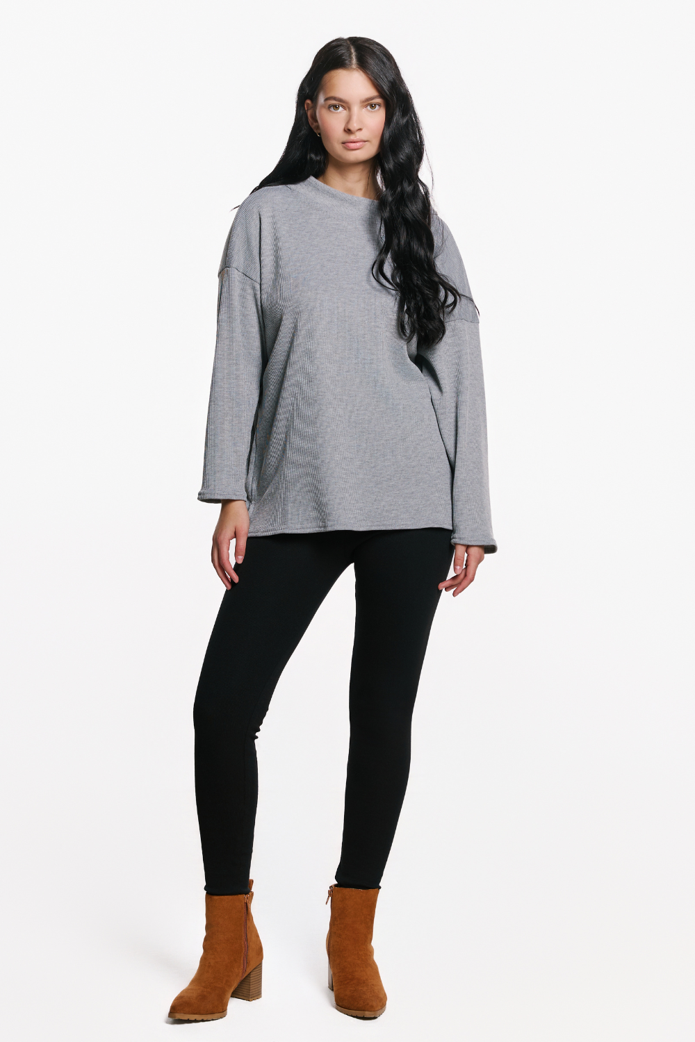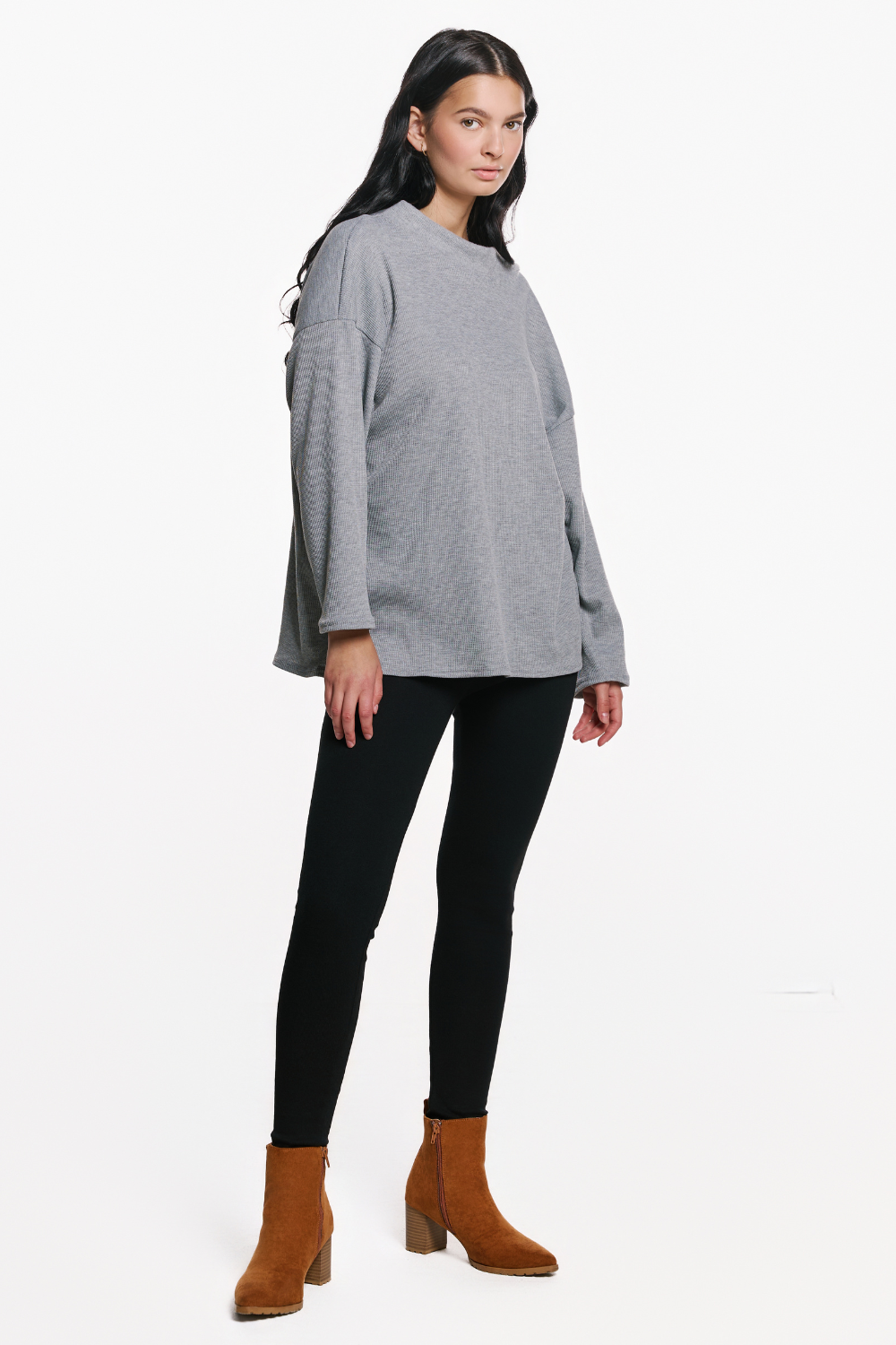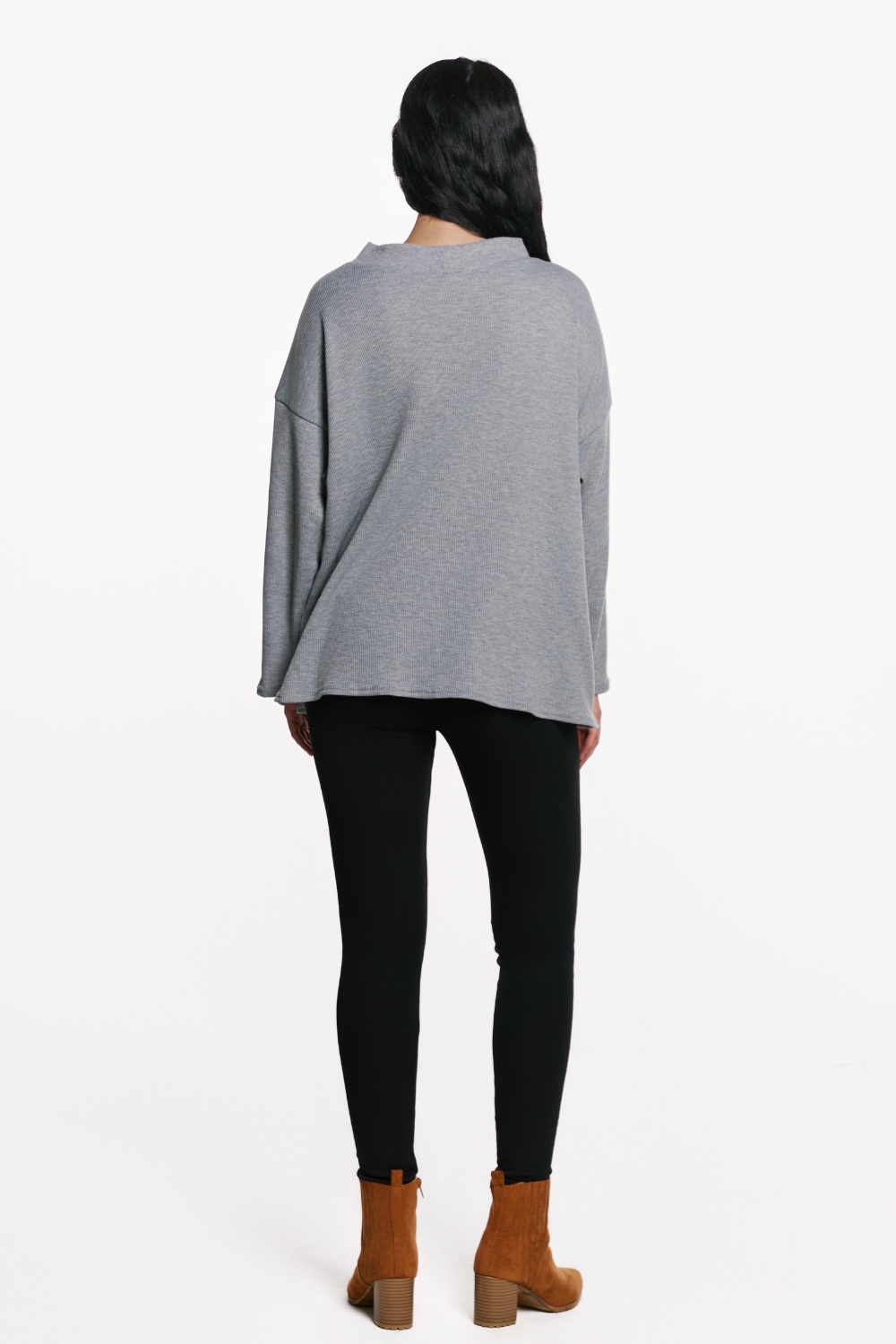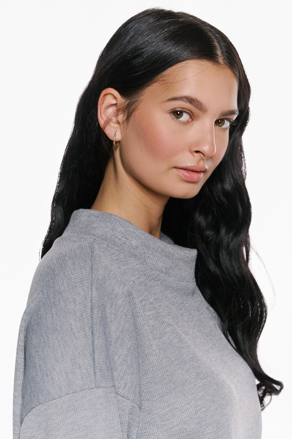 The Liv Sweatshirt is oversized and easy, perfect for lounging or layering. Made in bamboo terry and waffle knit, it features a soft draped crew neckline, side slits, and a relaxed fit for all-day comfort.