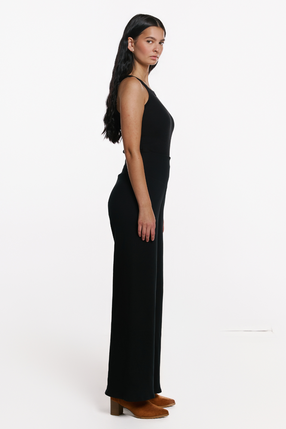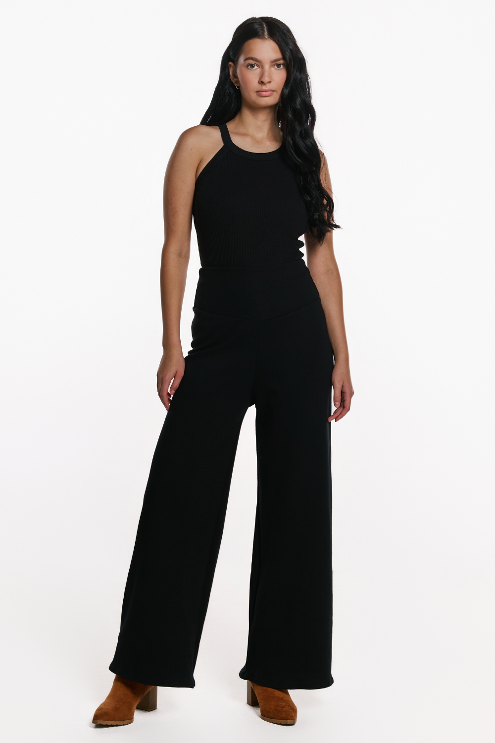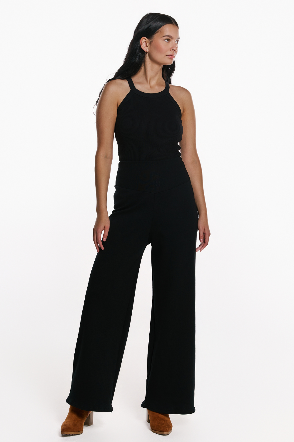 The Petra Palazzo Pant offers a wide-leg silhouette with a comfortable pull-on fit. Crafted in rib knit or bamboo fleece, they bring ease and flow to your winter wardrobe while still feeling cozy.